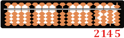 Let’s add 2,145 and 5,668. First reset your abacaus to default position. Then enter 2,145 on the abacus by pushing down a top row bead in the “ones” column, push up four bottom row beads in the “tens”, one in the “hundreds”, and two in the “thousands”.